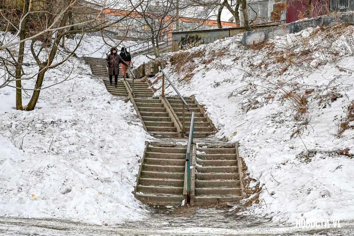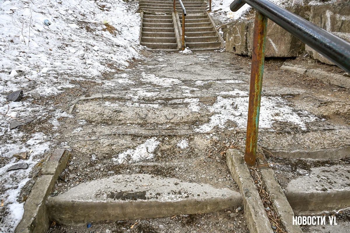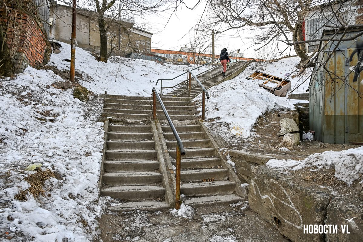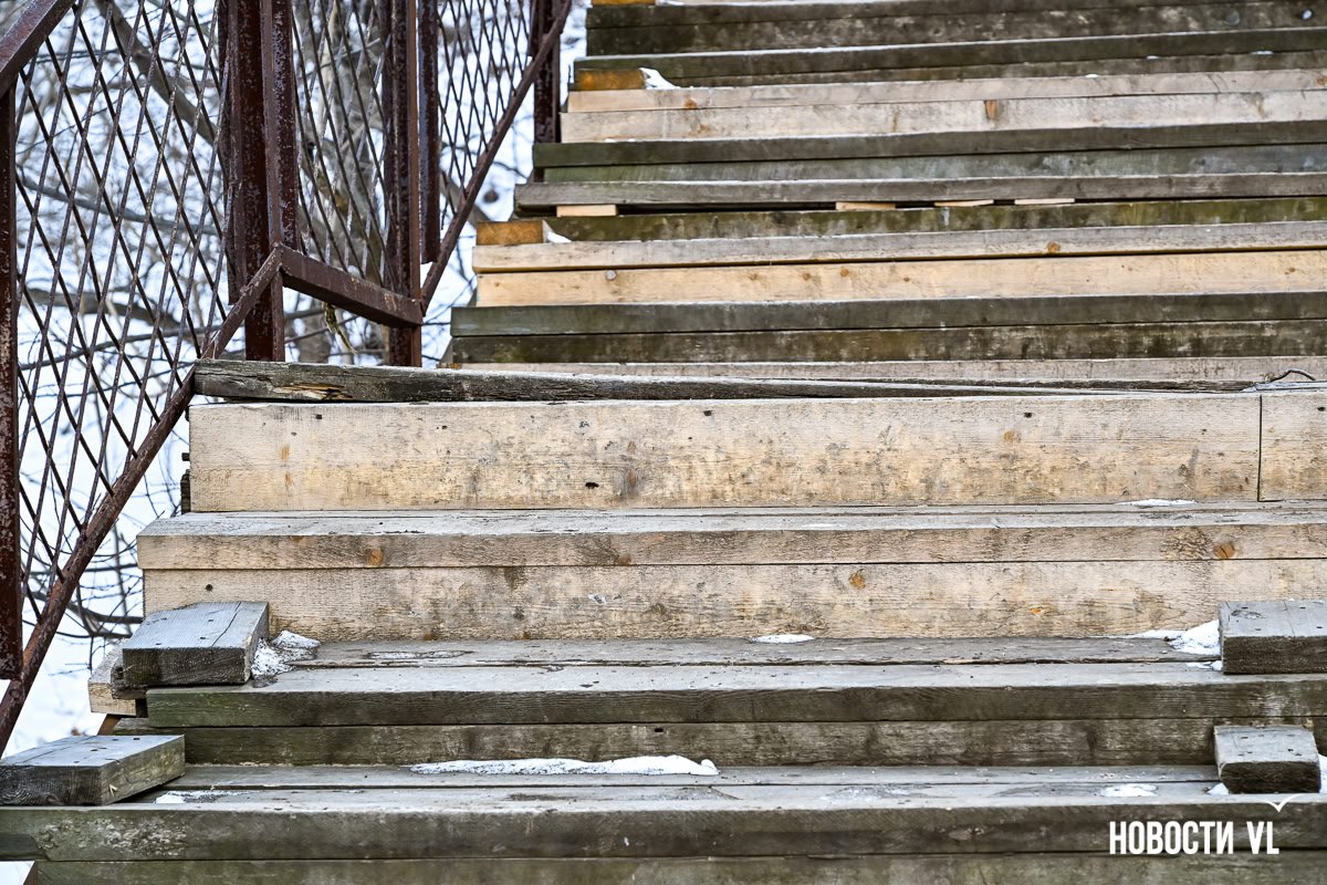 Две длинные и сложные лестницы должны отремонтировать во Владивостоке к середине лета. Одна – деревянная, ведущая от улицы Калинина к станции «Мыс Чуркин», на её состояние поступает много жалоб. Вторая – это даже не лестница, а длинная протяжённая дорожка от гостинок на Красного Знамени к Луговой.
