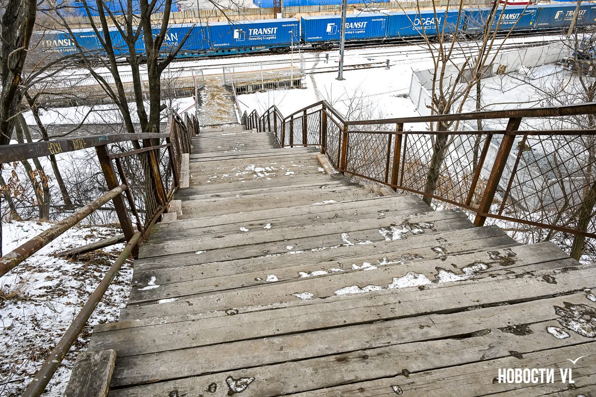 До середины лета во Владивостоке должны отремонтировать деревянную лестницу у станции «Мыс Чуркин» и старую лестницу на сопке Шошина