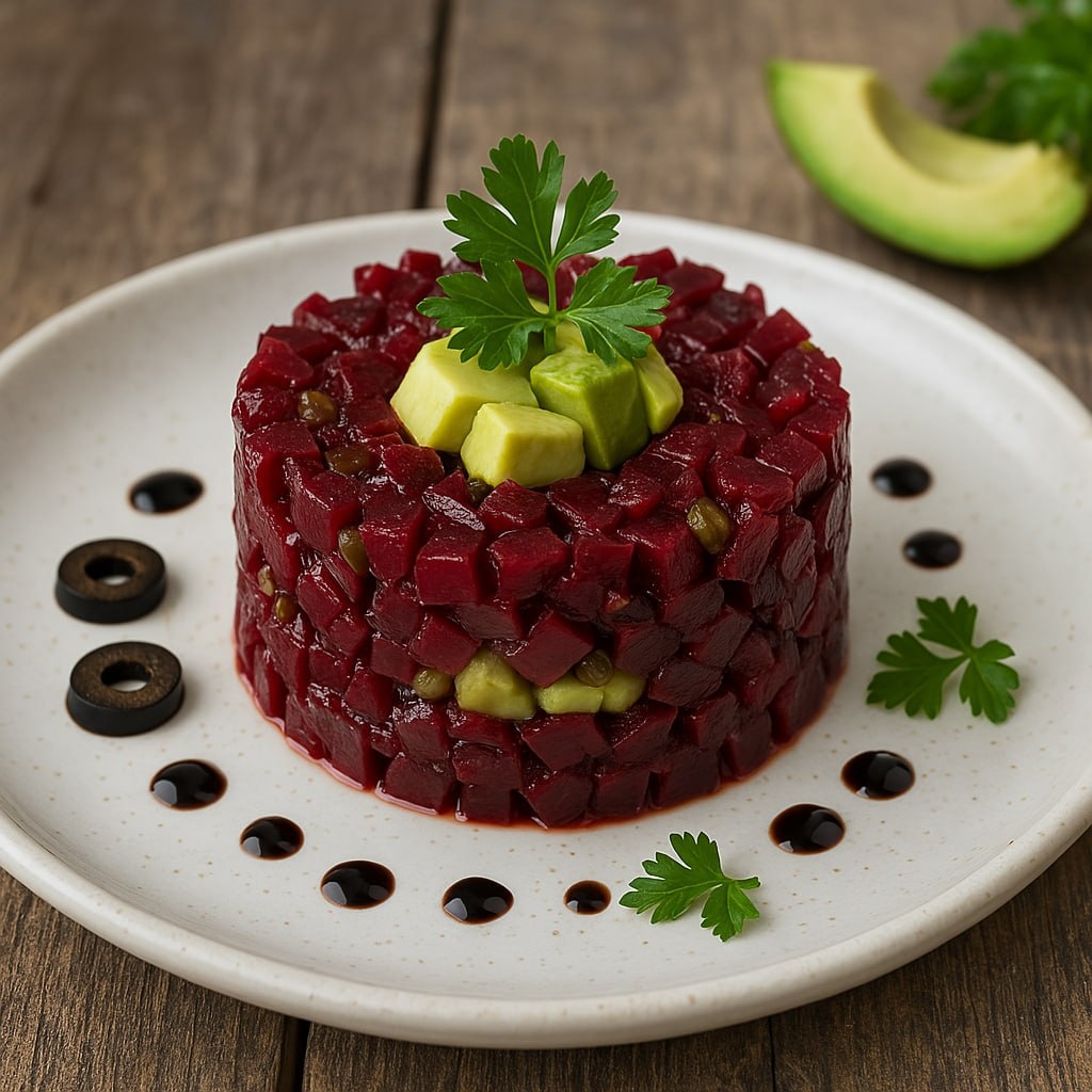 Приготовьте удивительное блюдо, которое не только порадует вас, но и станет настоящей звездой любого стола — свекольный тартар с изюминкой. Этот салат удивительно прост в приготовлении, а его презентация не оставит равнодушными даже самых требовательных гурманов.