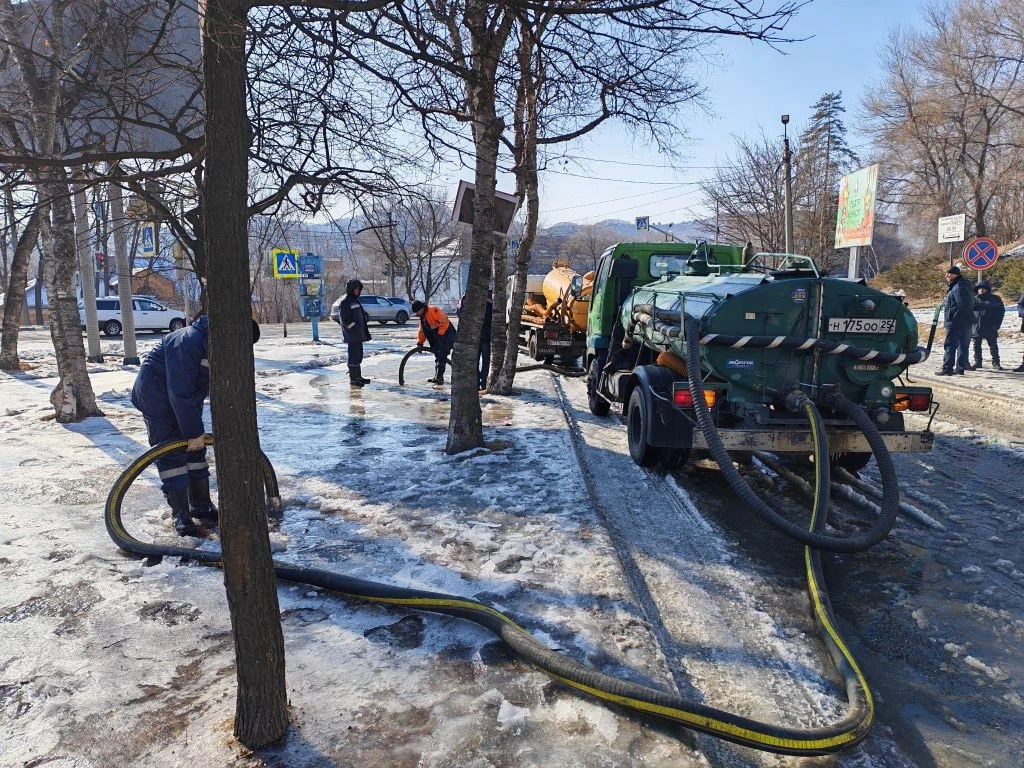 В настоящее время специалисты МУП «Находка Водоканал» завершают работы по сбору оставшейся воды.