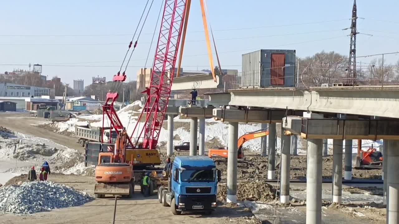 Хорошими темпами движется строительство моста по ул. Чичерина. К середине февраля мостостроители планируют смонтировать оставшиеся балки моста.