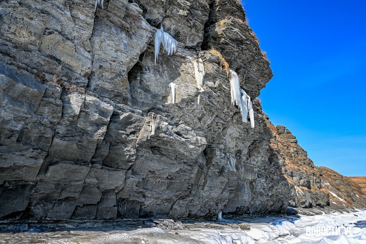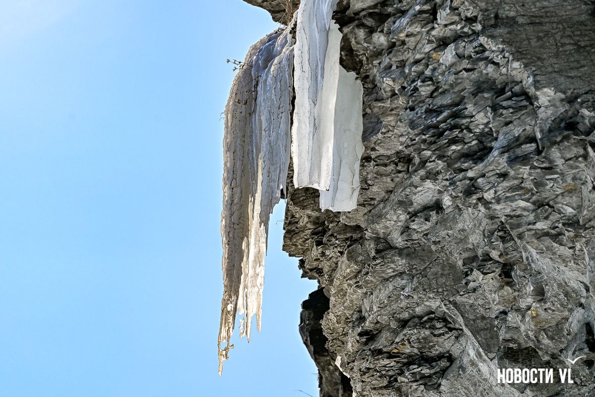 В окрестностях мыса Вятлина на острове Русском каждую зиму образовываются большие сосульки, которые свисают со скал до самой земли. Обычно они появляются в декабре, и многие приезжают, чтобы полюбоваться на это природное явление и сфотографировать его. Но в этом году знаменитых больших сосулек, напоминающих застывший водопад, ещё нет, хотя уже заканчивается январь. В Примгидромете объяснили, что на это могли повлиять устойчивые морозы, которые держатся во Владивостоке весь месяц.