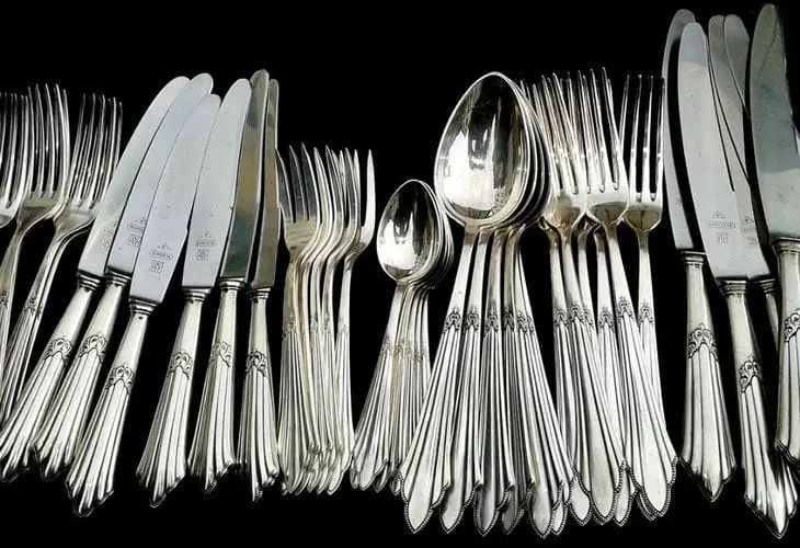 Серебро чернеет от воздуха, воды или еды, особенно с солью. Потемнение делает посуду некрасивой и кажется, что она испорчена. Без правильной чистки вернуть блеск серебру становится сложнее.