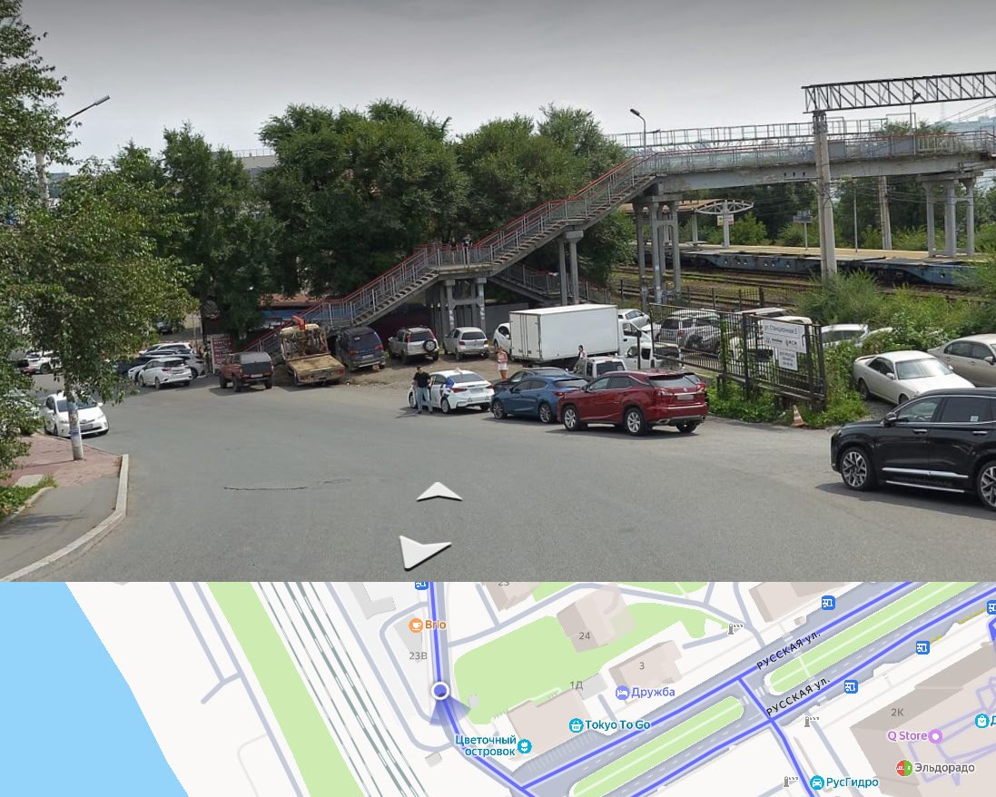Этот пятачок хорошо известен многим автомобилистам – именно здесь, неподалёку от виадука, раньше часто останавливались представители автошкол. Это было началом (а возможно является и сейчас) экзаменационного маршрута на сдачу прав в ГАИ. Теперь часть территории для машин недоступна – на участке ближе к железной дороге стоят массивные бетонные тетраэдры, которые также называют зубами дракона. Подобные бетонные конструкции часто используют как противотанковые заграждения. Сдвинуть их не так-то просто, в отличие от жёлтых конусов, которые частенько устанавливают с этими же целями, – масса готового изделия составляет 1,2 тонны. Можно смело предположить, что это самое брутальное и капитальное антипарковочное решение во Владивостоке.