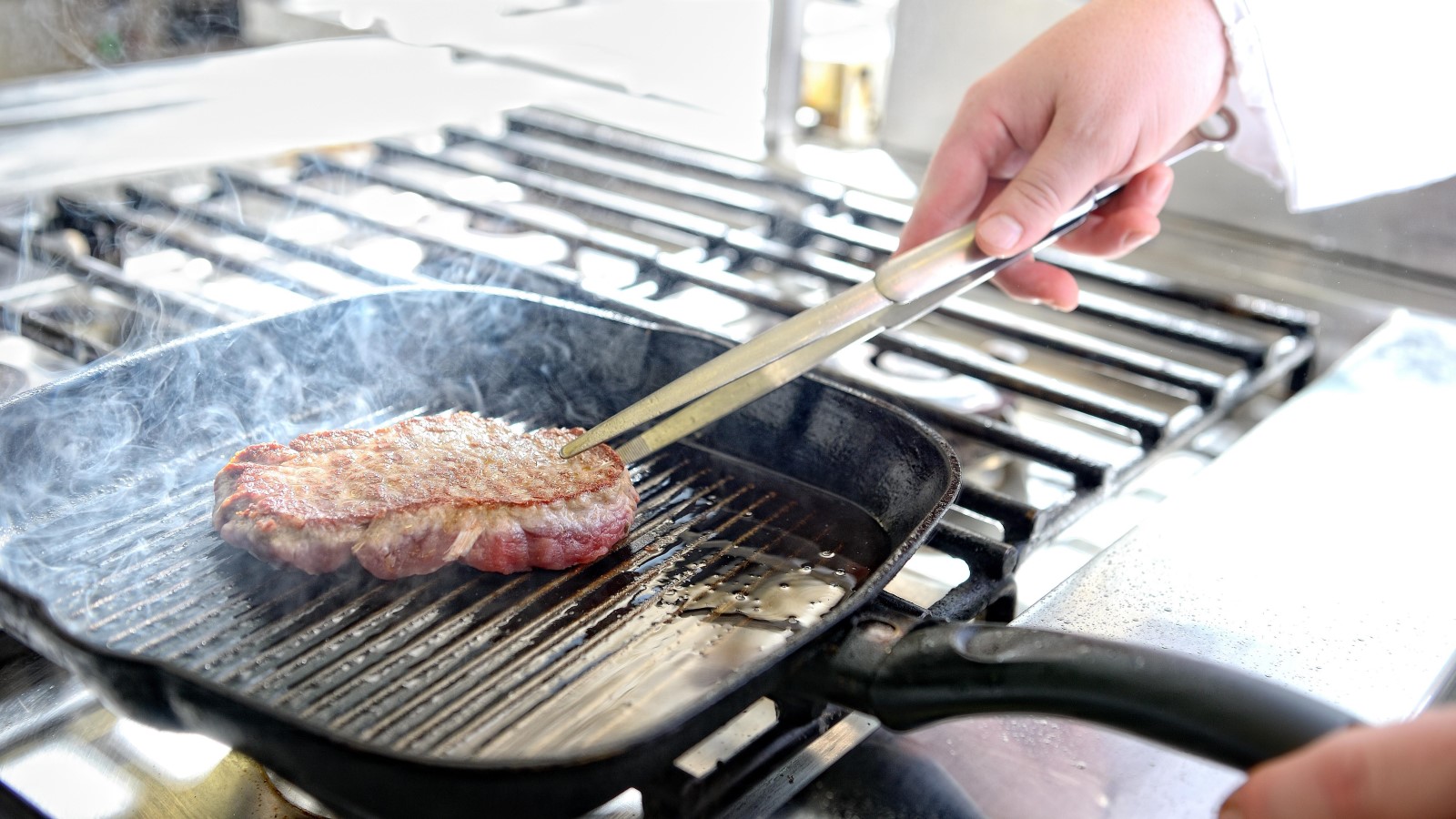 Сковорода-гриль уже в начале использования начинает дымить и жутко пахнуть. Не справится с такой гарью даже самая мощная вытяжка. Однако способ избежать неприятных последствий все же есть. Шеф-повар Александр Растунин поделился профессиональным секретом с порталом Городовой.