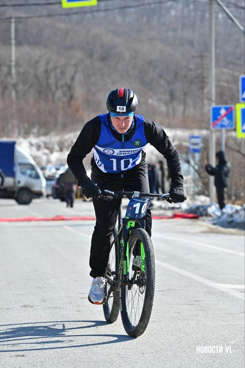 Более 100 спортсменов собрались сегодня у берегов бухты Новик, чтобы проверить свои силы в триатлоне. Участники стартуют отсюда и проверяют свои силы на трёх отрезках, один из которых проходят бегом, другой на велосипеде и третий на лыжах. Самые активные и подготовленные уже перешли к последнему этапу.