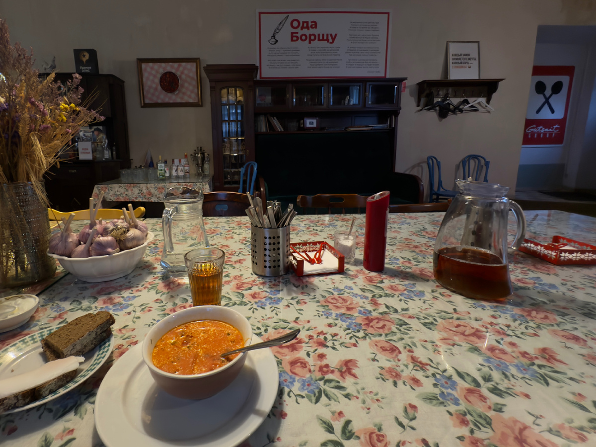 Это место привлекает людей не только своими ценами, но и уникальной атмосферой. Здесь никто не спешит, и каждый может насладиться общением. Официантов нет, но общая дружелюбность и непринужденный стиль создают уютную обстановку, где все знают друг друга и делятся впечатлениями о борще.