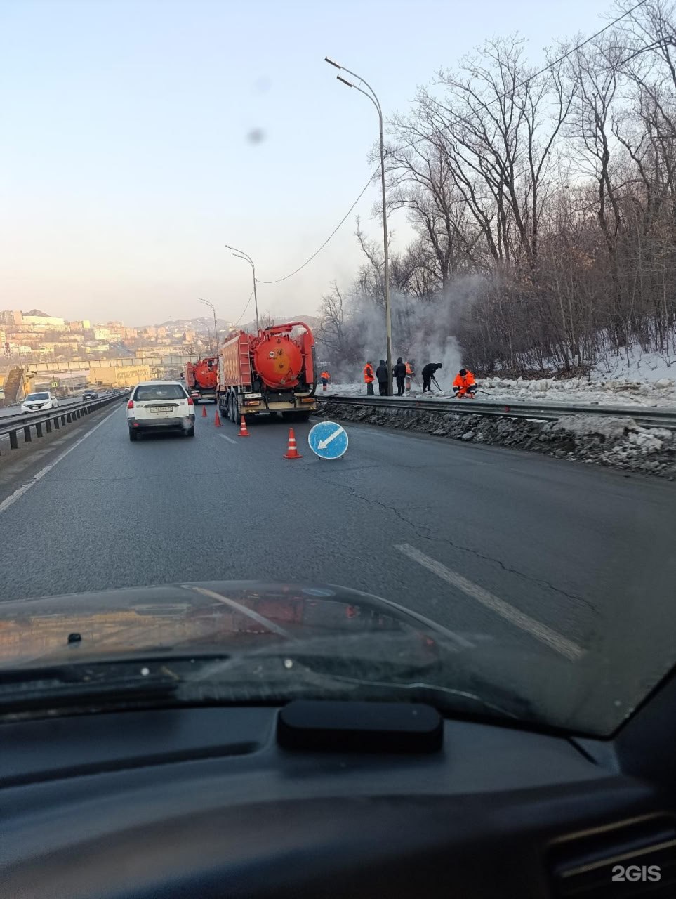 На Героев-Тихоокеанцев в районе остановки Катерная дорожные службы заняли правую полосу. Собралась пробка со стороны Патрокла.