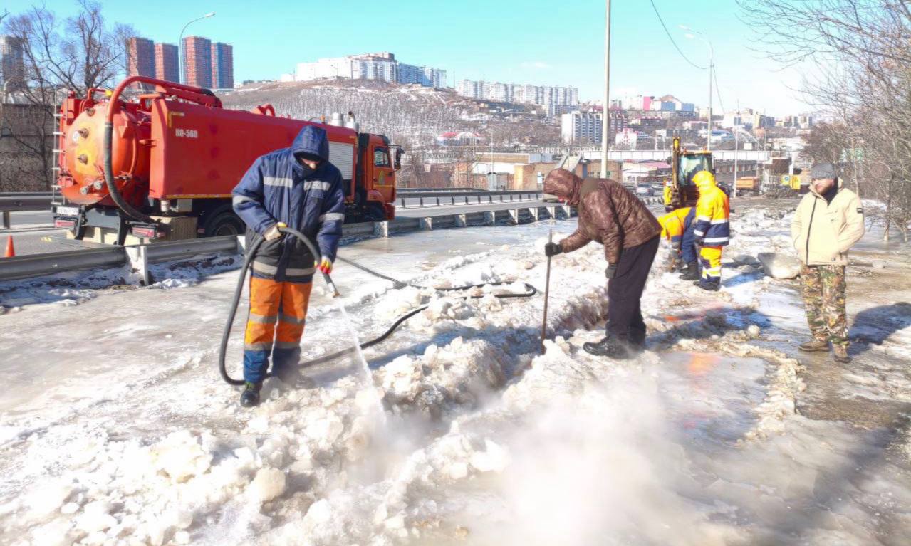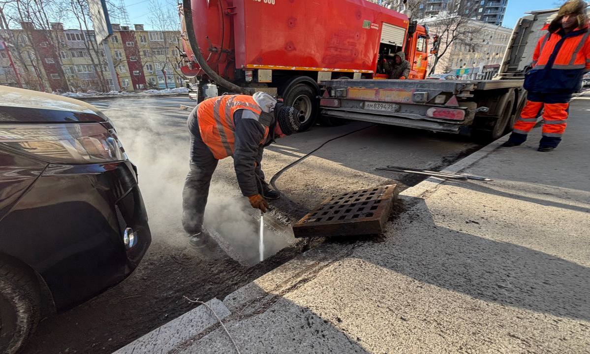 Дождеприемные камеры, смотровые и перепускные колодцы, а также сам трубопровод сетей ливневой канализации прочистили и промыли на Сахалинской, 58, 1-ой Флотской, 50, Лейтенанта Шмидта, 21, Шепеткова, 16 и 37, 1-ой Морской, 1, Океанском проспекте, 81 и 85.