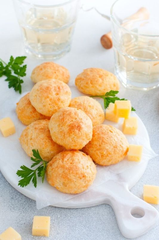 Выпекайте сырные шарики: сначала в разогретой до 200°C духовке в течение 5-7 минут, затем убавьте температуру до 180°C и продолжайте выпекать до золотистой корочки.