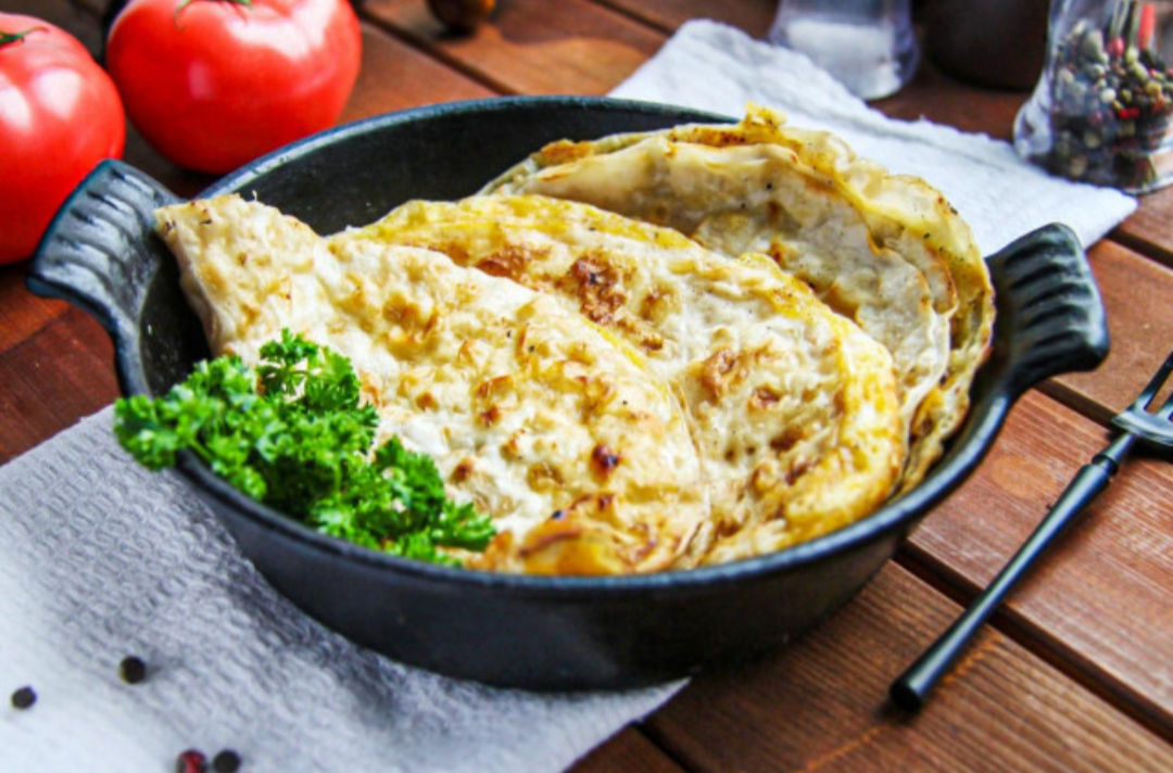 Разогрейте сковороду на среднем огне и добавьте чайную ложку сливочного масла. Когда масло растопится, начните обжаривание. Окуните два круга лаваша в соленую воду и выложите их на сковороду. Обжаривайте с каждой стороны до красивого золотистого цвета, примерно по 30 секунд. После этого переверните их и добавьте немного воды для создания пара, чтобы лаваш остался мягким внутри.