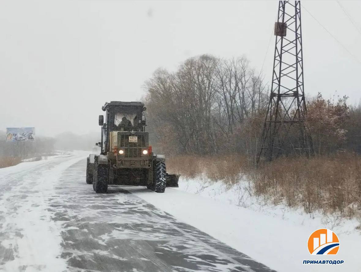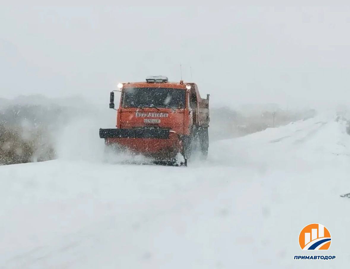 Специалисты филиала «Спасский» Примавтодора выполняют очистку проезжей части от снега: