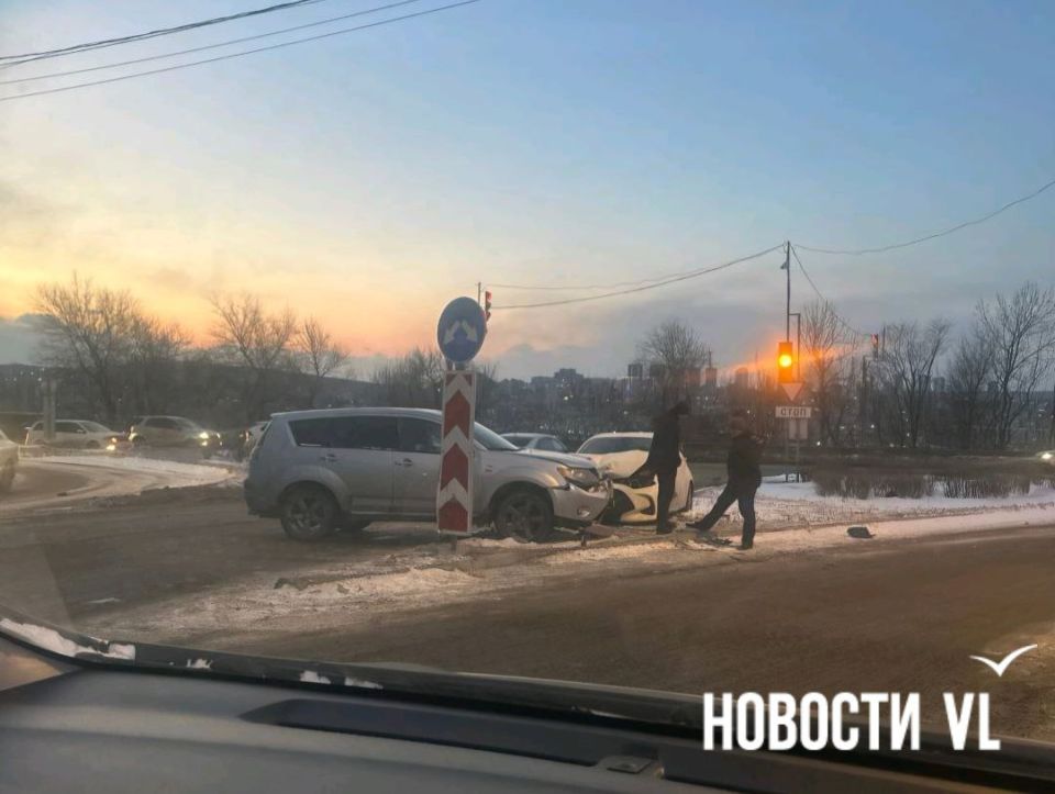 На перекрёстке Всеволода Сибирцева и Ломоносова столкнулись Toyota Vitz и Mitsubishi Outlander. Очевидцы подозревают, что водитель и пассажир Витц находят в состоянии алкогольного опьянения.