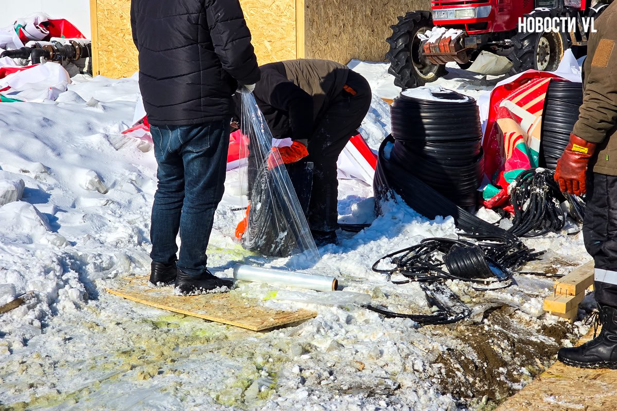 На центральной площади Владивостока разлили антифриз — зелёный снег соберут и вывезут