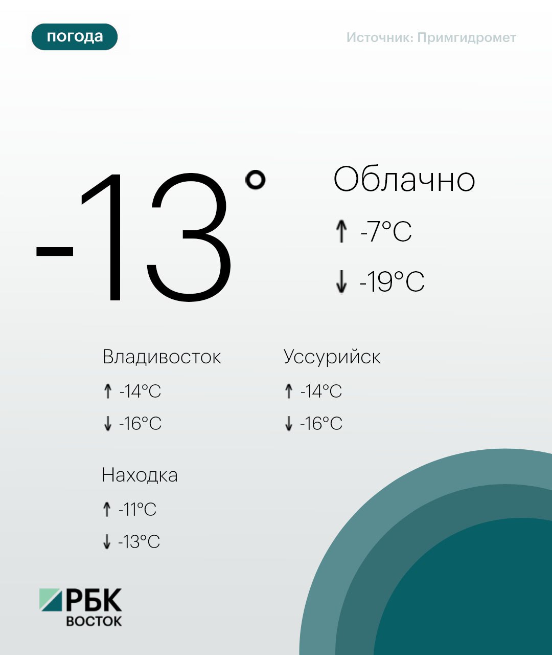 Во Владивостоке - небольшая облачность, без осадков. На дорогах гололедица. Ветер северо-западный умеренный до сильного. Температура воздуха -14...-16°C.