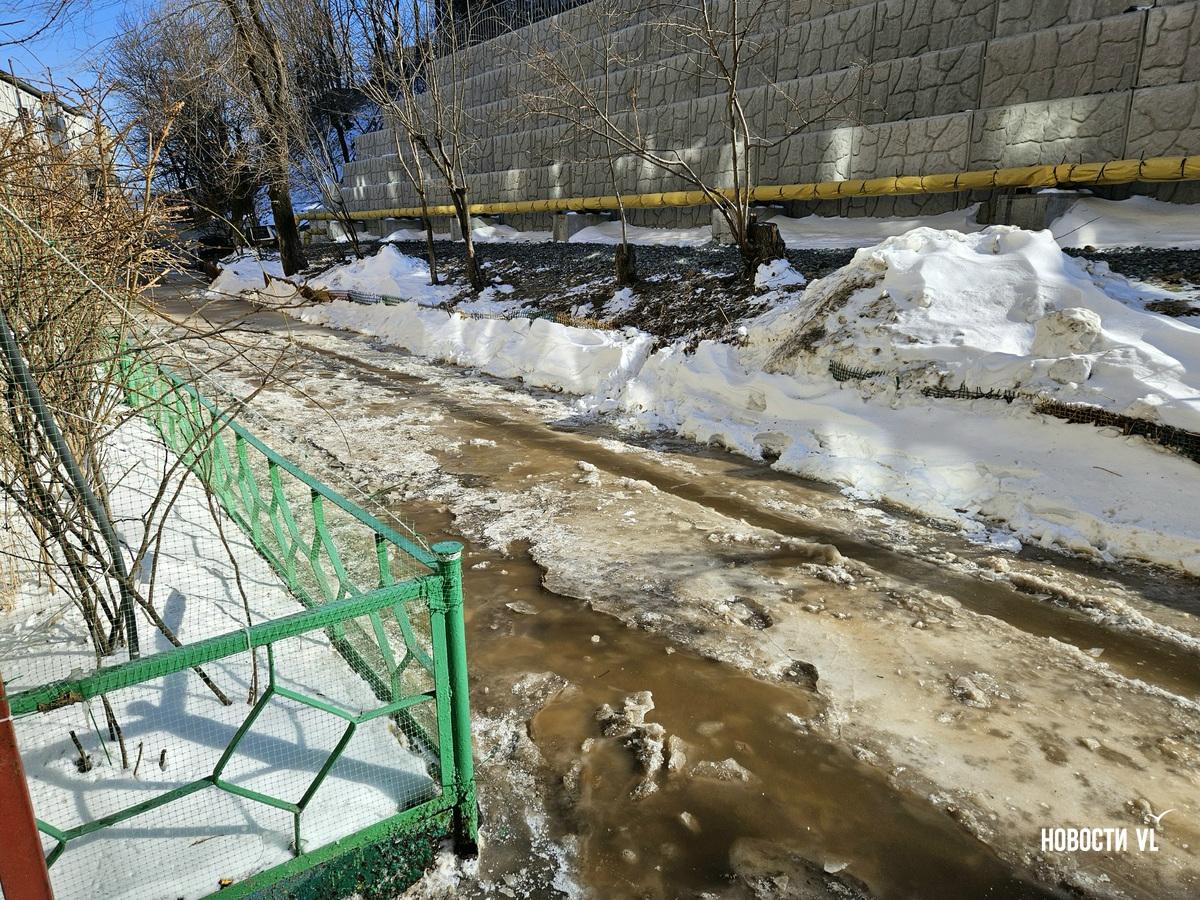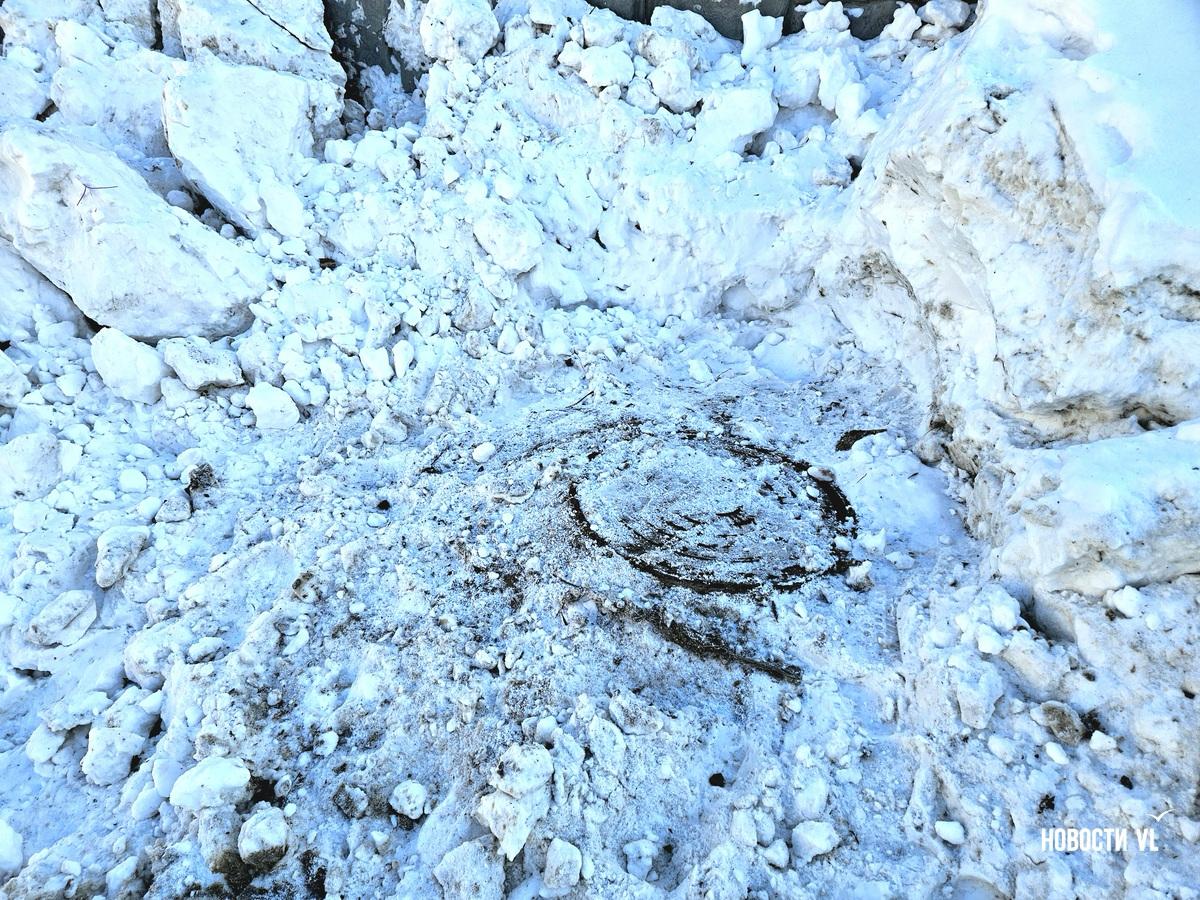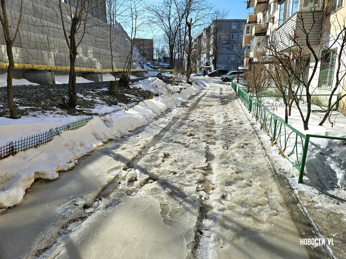 У дома № 58 на Луговой во Владивостоке из-за засора канализации весь двор залило нечистотами. У некоторых подъездов жидкость подобралась вплотную ко входным дверям. Проезд затянут тонкой коркой льда – двигаться здесь невозможно, поэтому он перегорожен бетонными блоками.