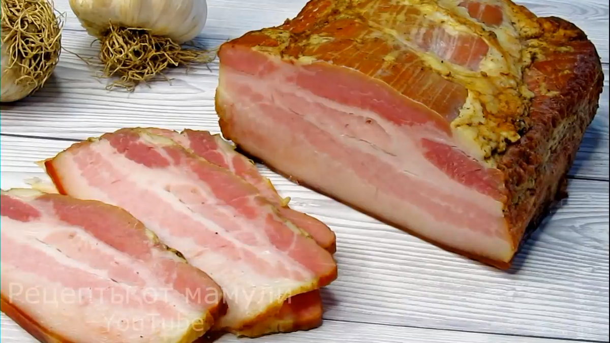Следующий шаг — запекание, которое происходит при температуре 80-85°C. Главная задача на этом этапе – добиться внутренней температуры мяса в 70°C. Без термометра есть смысл закладывать минимум три часа на приготовление. После завершения, вкусный бекон отправляется охлаждаться, а затем его можно нарезать на тончайшие кусочки.
