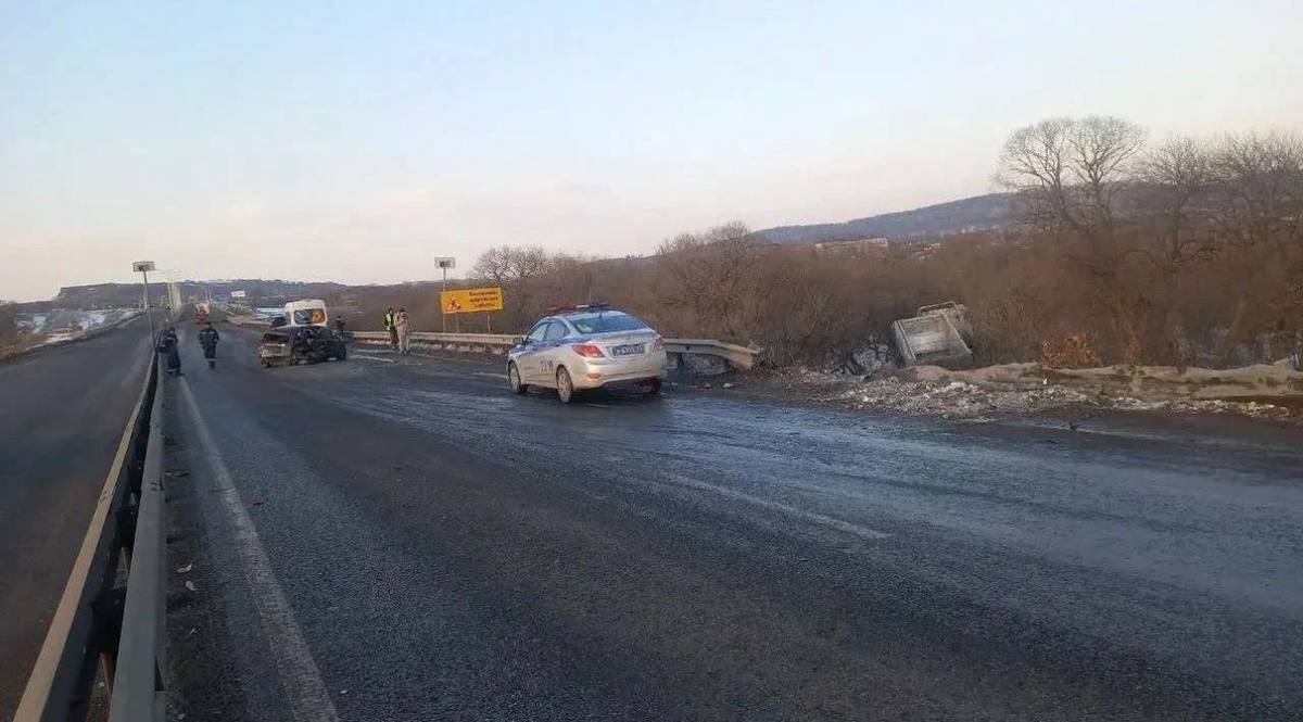 Вчера большегруз и универсал столкнулись на трассе в Надеждинском районе, пострадал один человек