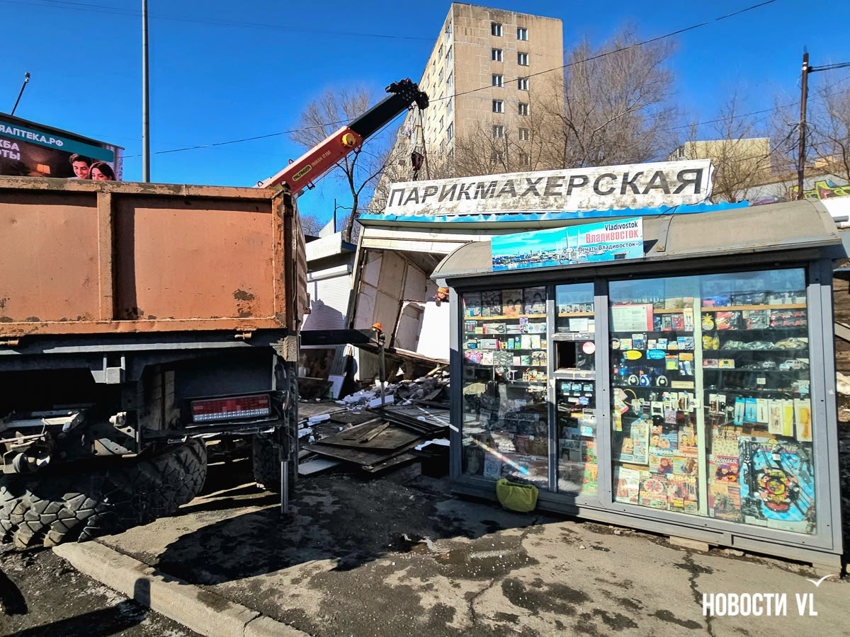 На Окатовой во Владивостоке сносят несколько торговых павильонов, стоявших там более 10 лет