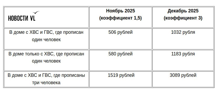 Жители квартир без счётчиков холодной воды уже с декабря начали платить в два раза больше, чем раньше – повышающий коэффициент вырос с 1,5 до 3. Новости VL подсчитали, сколько в среднем платят по нормативу те, кто у кого нет счётчиков и те, кто не подаёт показания вовремя.