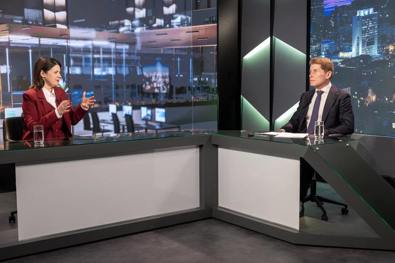 Площадка по техническому оснащению и уровню экспертности не уступает московской студии. Первым гостем стал губернатор Приморского края Олег Кожемяко. Глава региона обозначил роль РБК как ключевого источника бизнесаналитики и ориентира для предпринимателей.