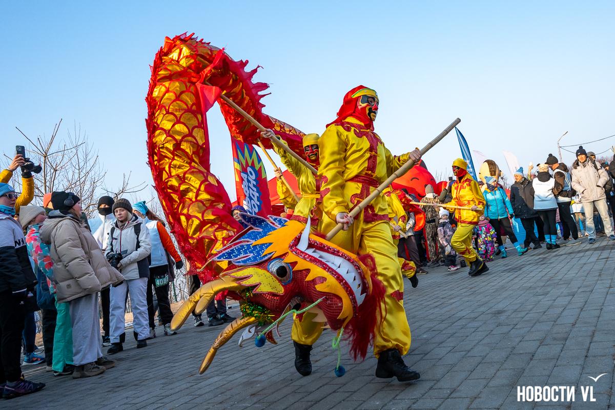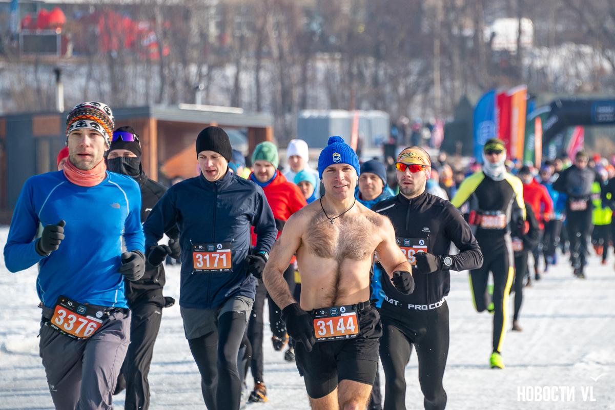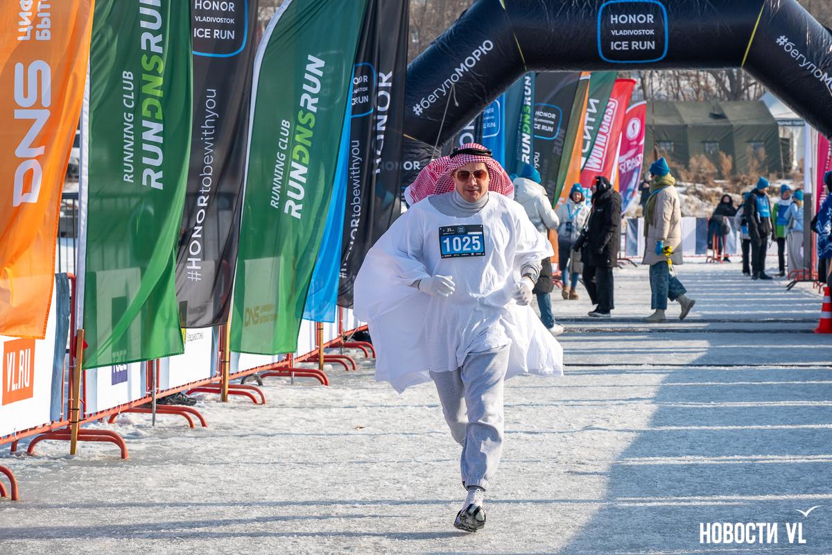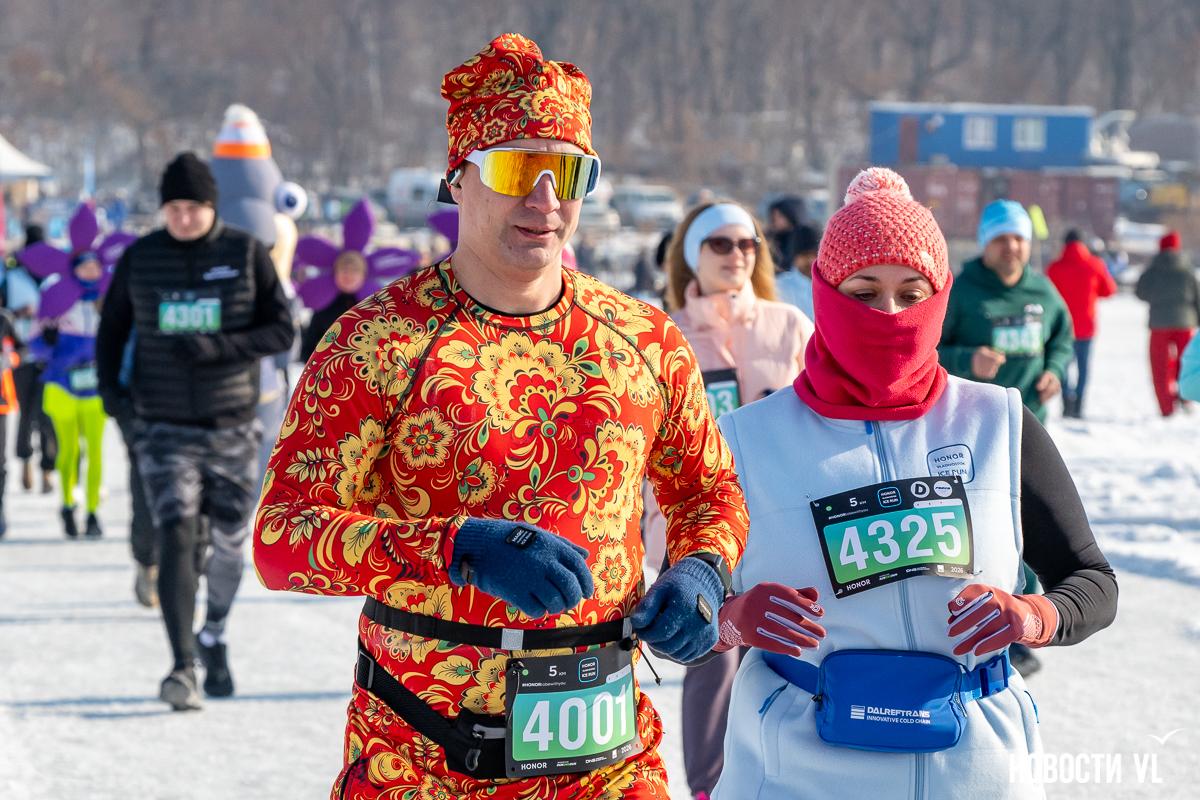 Во Владивостоке в бухте Новик прошел ежегодный одиннадцатый ледовый полумарафон Ice Run. Поскольку соревнования выпали на День влюблённых, к традиционным категориям добавили новую дистанцию – парный забег для влюблённых пар. Всего сегодня на лёд Японского моря вышли около 1500 спортсменов из 5 разных стран. Кто-то пришел поучаствовать просто в удовольствие, а кто-то решил так отпраздновать свой день рождения. Некоторые участники выбрали для соревнований необычные костюмы, чтобы выделиться среди других бегунов. Перед стартом, как и каждый год, спортсменам и болельщикам показали танец яркого китайского дракона.