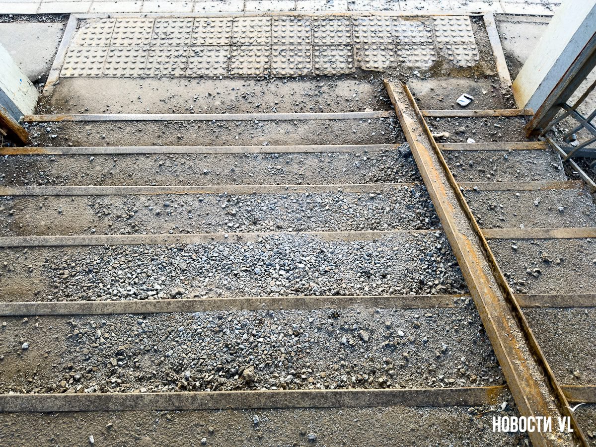 Напомним, у виадука на «Поликлинике» куски бетона с верхнего пролёта падают на нижний, ступени усыпаны крошкой и крупными камнями. При этом объект востребованный: с одной стороны поликлиника и жилой район, с другой – остановки автобуса и трамвая, а также входная группа парка Минного городка, который прямо сейчас реконструируют и обещают открыть уже в нынешнем году.