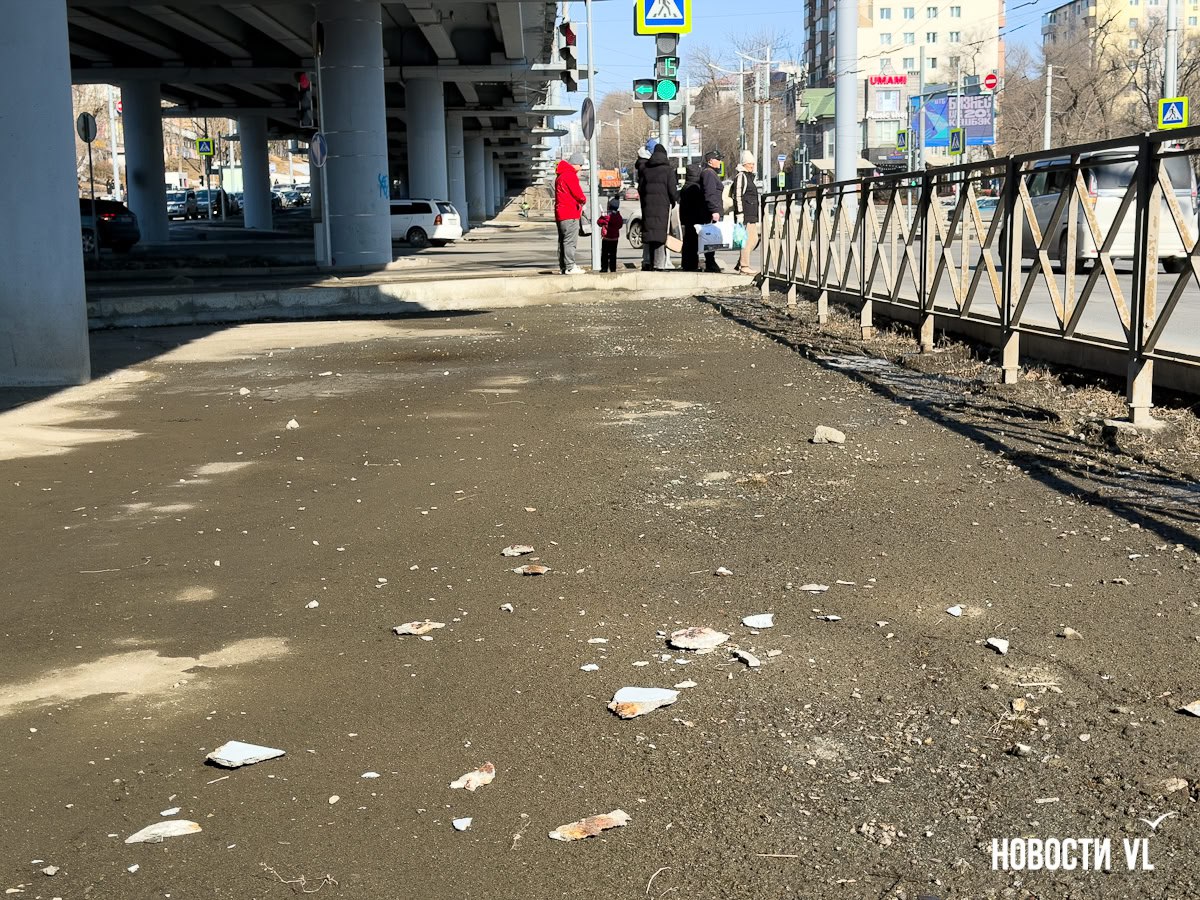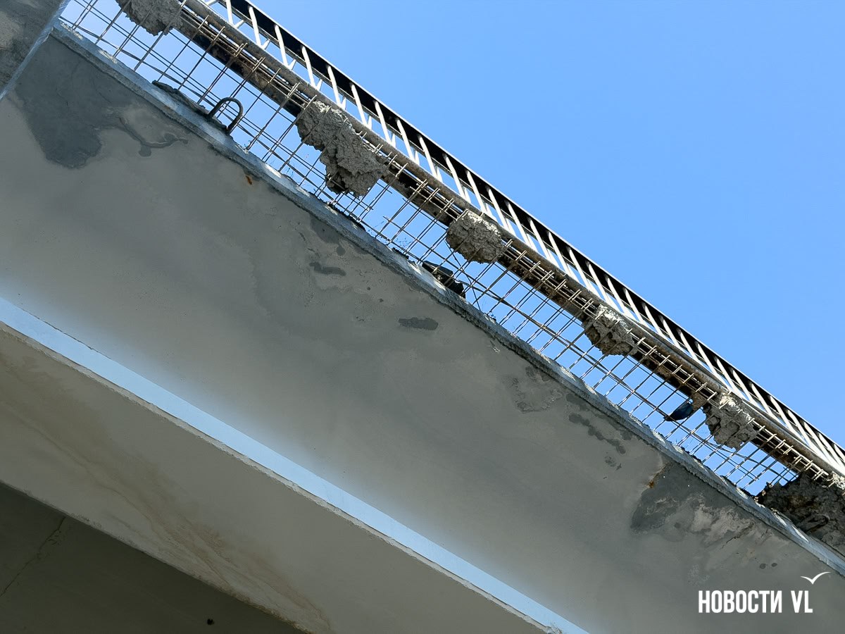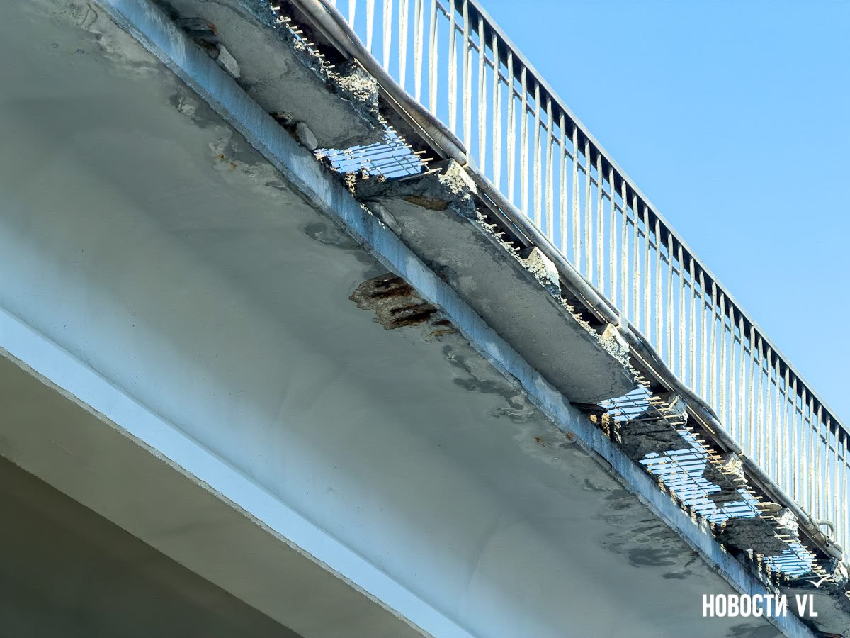 Также горожане заметили, что куски бетона с путепровода на Второй Речке осыпаются прямо на проезжую часть. По их словам, есть риск повреждения автомобилей. Корреспондент Новостей VL побывал на месте, но следов бетона на дороге не заметил. Зато есть они на недавно отремонтированном тротуаре, где зелёный сигнал светофора ждут пешеходы. Над их головами местами видна ржавая арматура, через дыры в путепроводе можно наблюдать небо. Путепровод в таком состоянии давно, о конкретных планах ремонта пока не сообщалось.