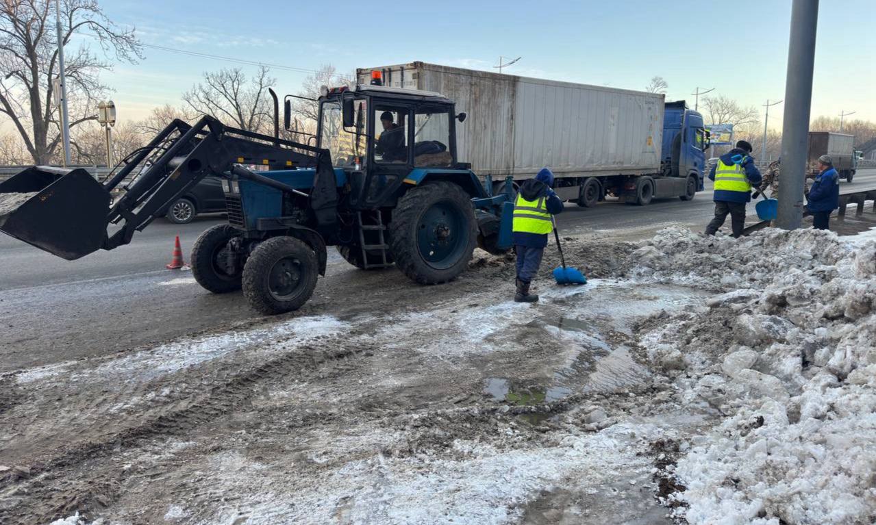Инженерные службы выполняют устранение течи, очистку лотка, промывку трубы и устранение наледи в районе остановки «13 км».