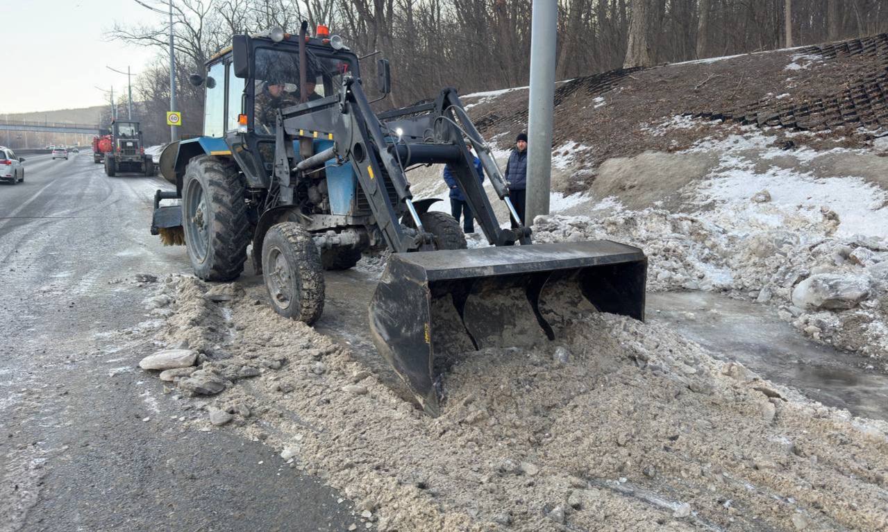 Дорожные службы выполняют уборку снега на улицах Вострецова и Невельского.
