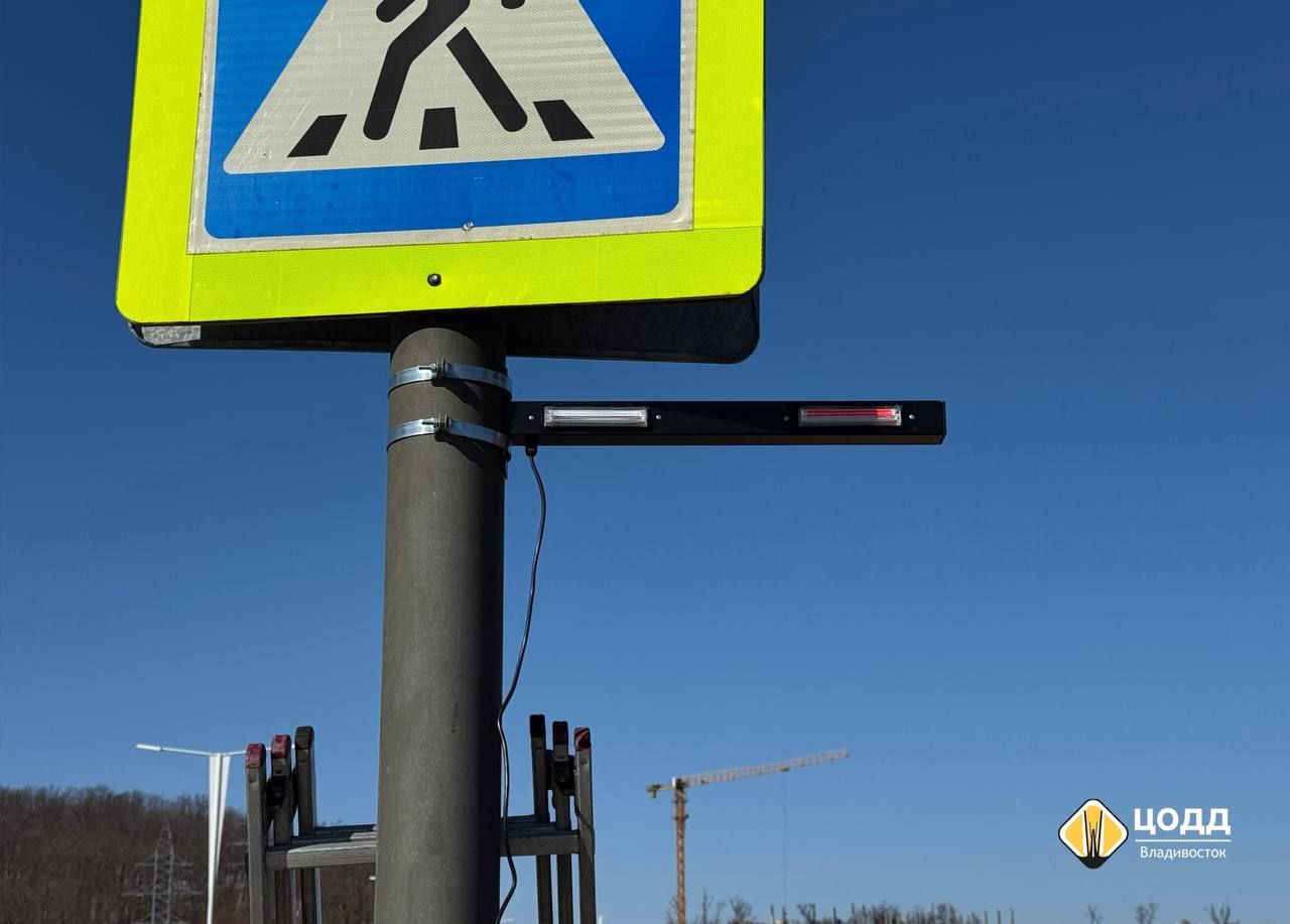 Устройствами уже оборудовали нерегулируемый пешеходный переход в районе остановки «Пожарная академия», а также поворот в сторону Океанариума на острове Русском.