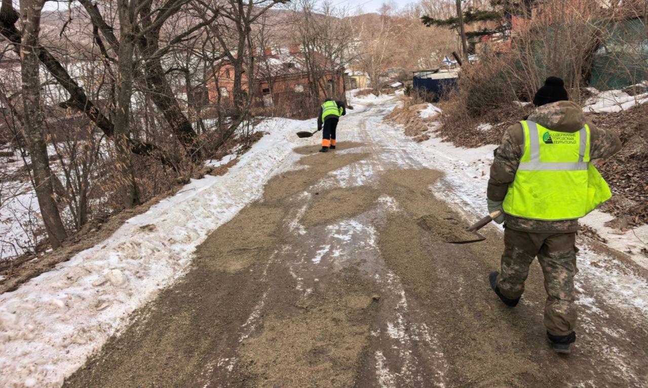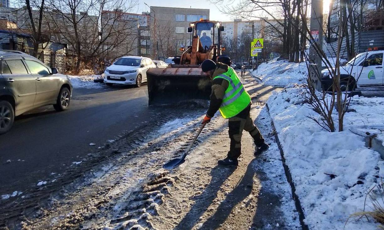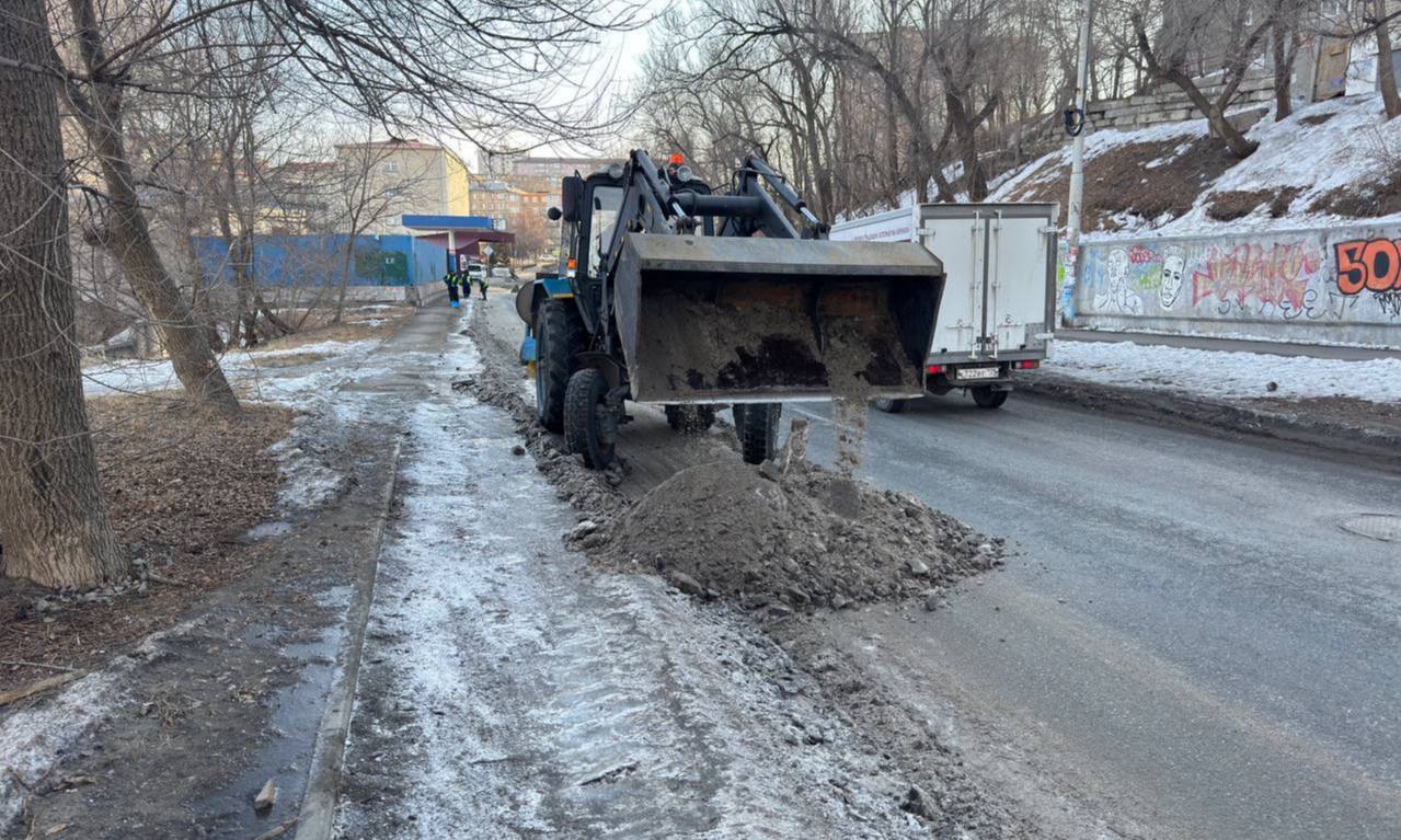 Фрунзенский район — комплексная уборка по адресу Верхнепортовая, 25, ручная просыпка на Океанском проспекте, уборка подземных переходов на Алеутской и Светланской.