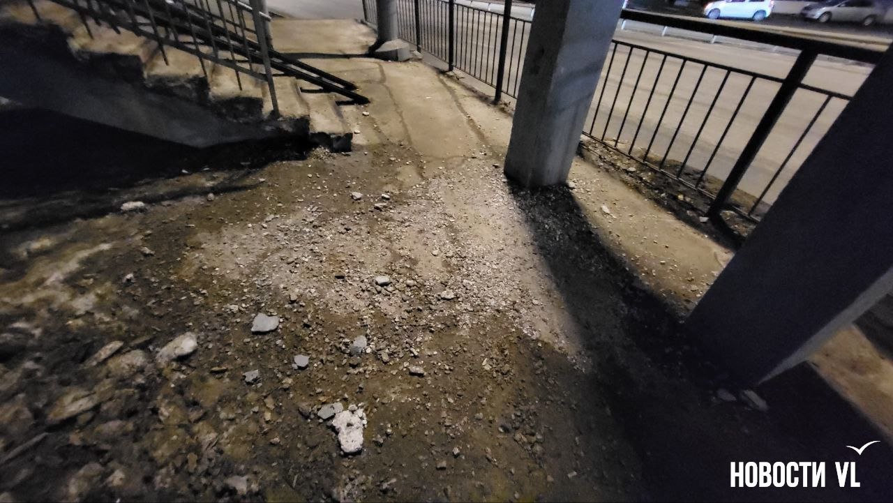 Виадук на Некрасовской возле библиотеке им. А.М. Горького тоже осыпается.
