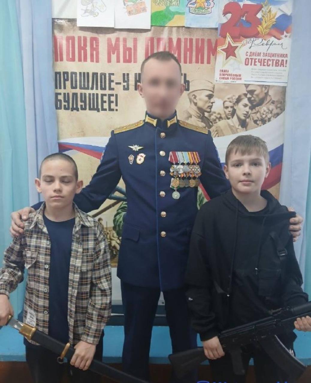 Главное событие — встреча школьников с настоящим героем. К ребятам приехал участник специальной военной операции, кавалер ордена Мужества Артем Н.