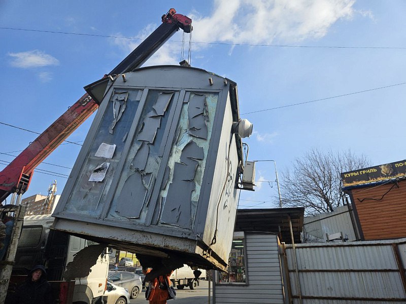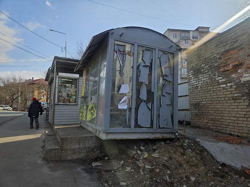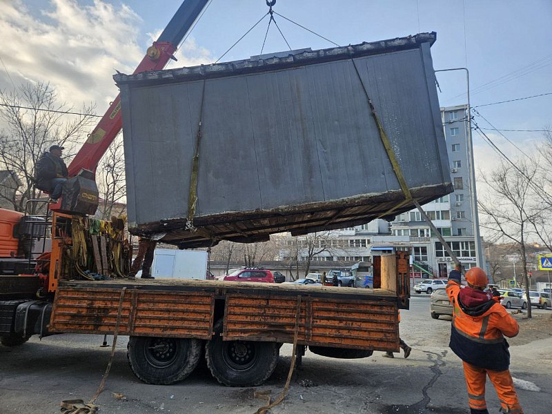 Два киоска демонтировали и вывезли на площадку временного хранения с Магнитогорской, 11а и проспекта 100-летия Владивостока, 22.