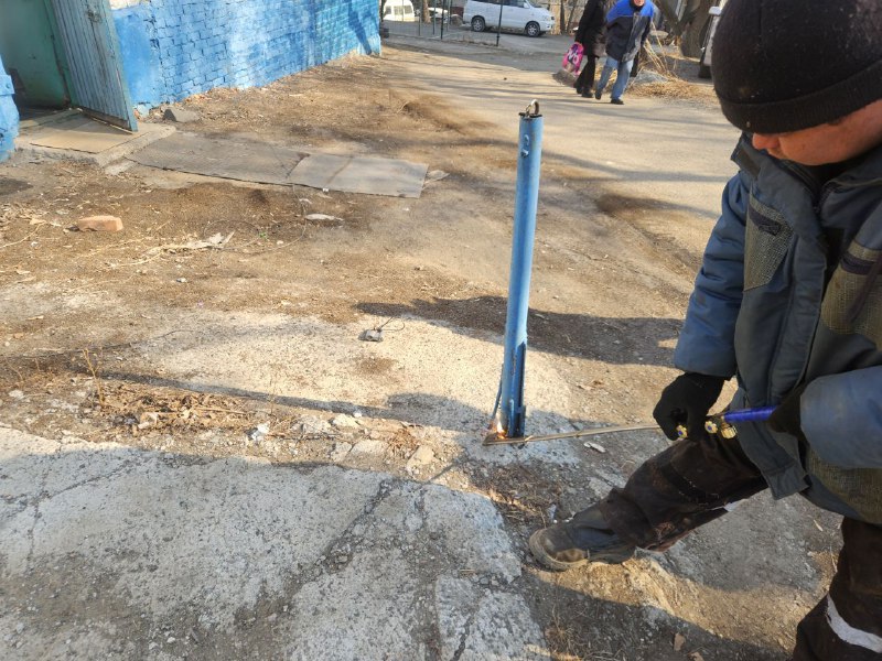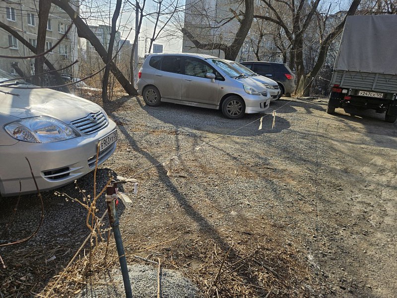 Рядом с домом № 1 на Енисейской рабочие убрали парковку, которую с помощью металлических столбиков и троса выделили для себя автомобилисты.
