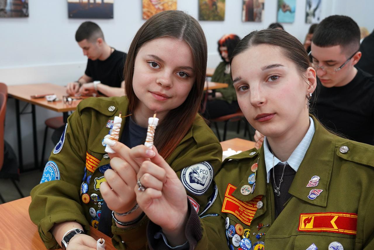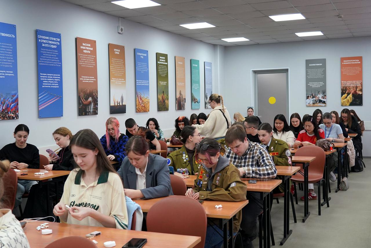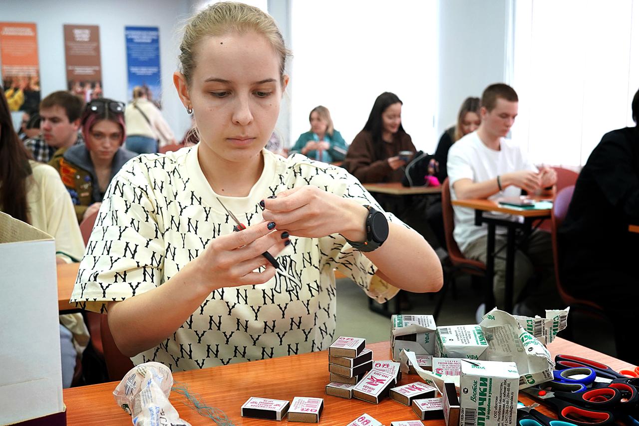 Более 70 студентов и сотрудников Владивостокского государственного университета собрались на мастер-класс, чтобы своими руками изготовить специальные фронтовые спички. Для их создания нужны простые материалы: обычные спички, нитки, парафин и ватные диски.