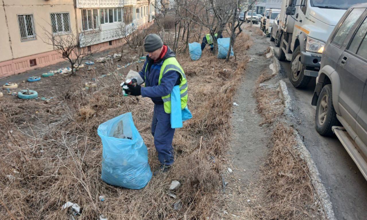 Первореченский район — уборка мусора; вывоз автомобильных шин на улицах Выселковой и Карьерной.