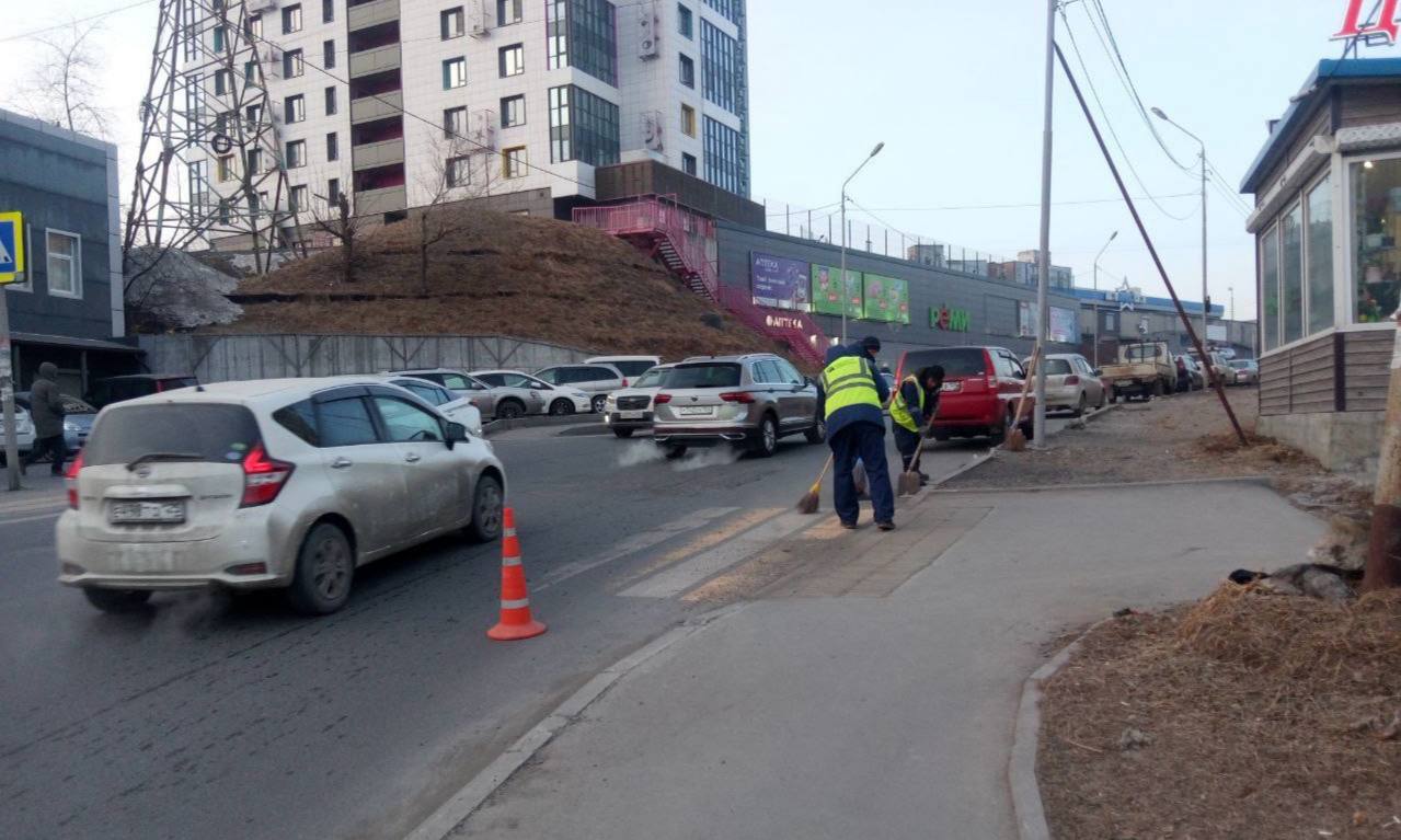 Фрунзенский район — уборка подземных переходов на улицах Светланской и Алеутской; удаление несанкционированной рекламы; комплексная уборка на улице Посьетской.