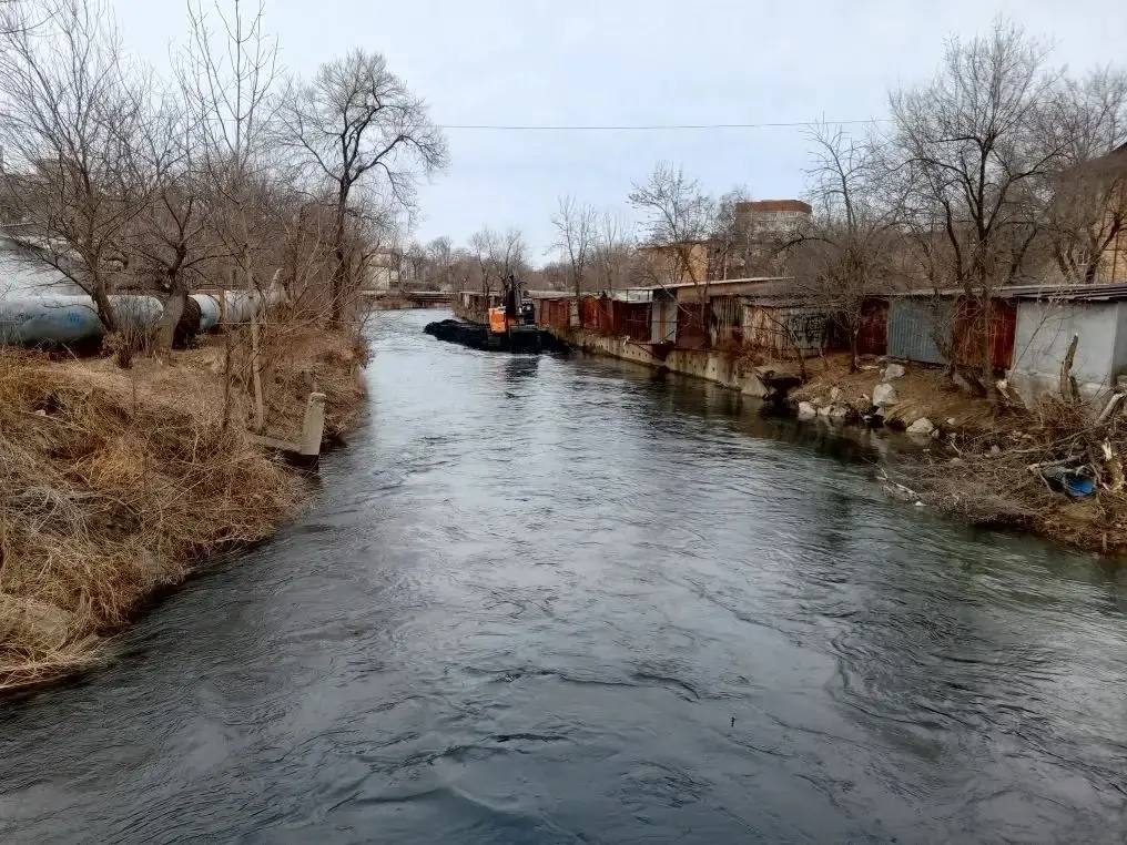 Системная расчистка городских рек ведется с 2024 года. Совместно с Министерством по делам ГО и ЧС. За это время работы прошли на Песчанке, Богатой, протоке Соленой, коллекторе на Иманской, а в 2025 году – на Первой речке.