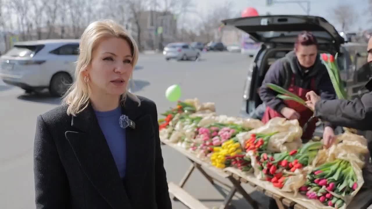 В преддверии Международного женского дня во Владивостоке открылись точки продажи тюльпанов.