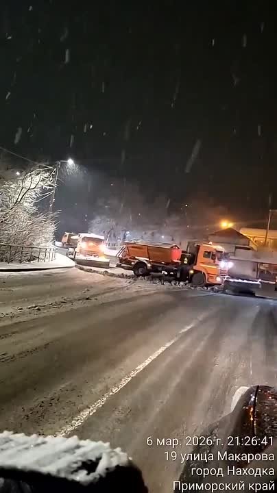 В Находке настоящая зима, спецтехника ликвидирует во всю последствия непогоды.Видео: @nhkadm
