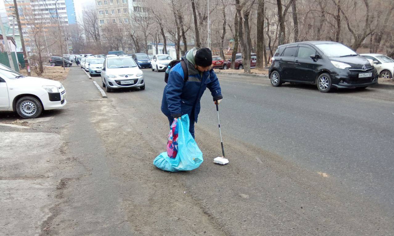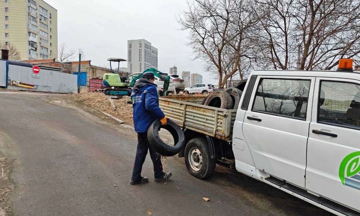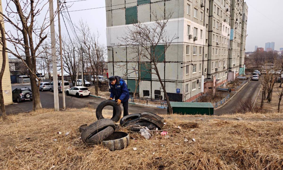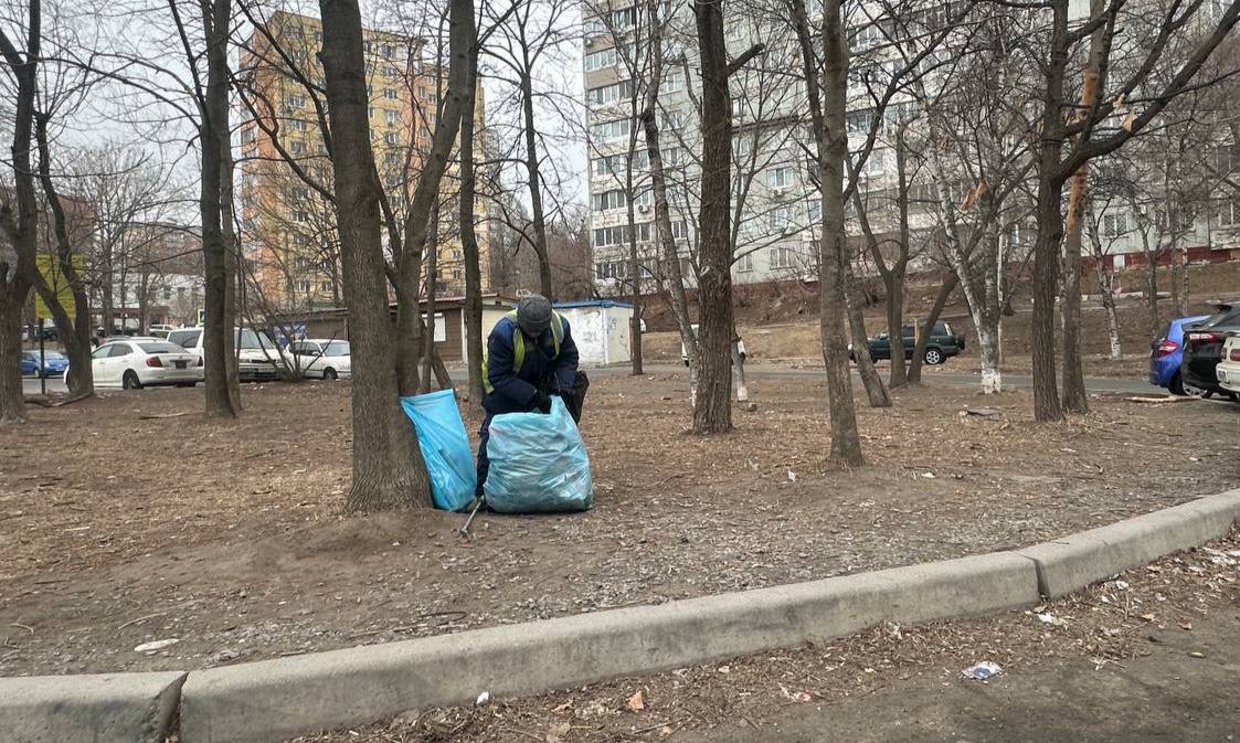 Первореченский район — комплексная уборка прибордюрной полосы на улице Молодёжной и уборка свалки на Партизанском проспекте.