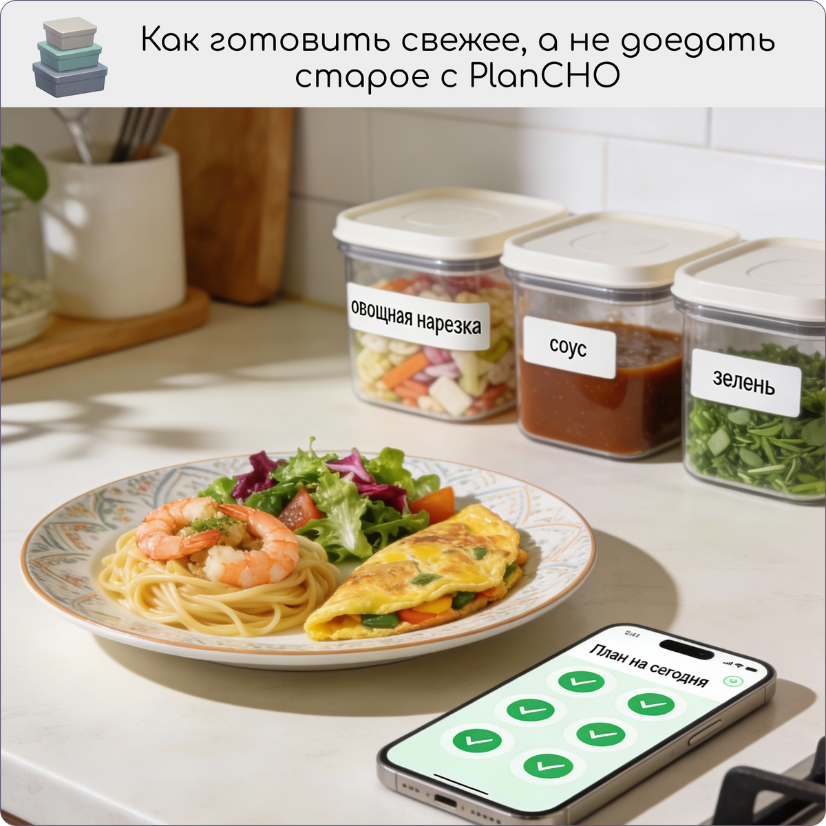 - Планируйте меню заранее. Используйте удобные сервисы, такие как PlanCHO, чтобы записывать желаемые блюда на неделю.