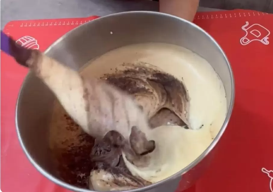 Когда бисквит остынет, с него аккуратно срезают верхний слой толщиной около 1 см и вынимают часть мякиша, чтобы создать своеобразный карман для начинки. В этот кармашек помещают вишнёвую массу и немного бисквитной крошки, а затем все покрывают срезанным верхом, аккуратно прижимая. Завершающий штрих — обилие глазури, равномерно распределяемой по всему торту.