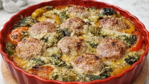 Сочетание свиного и говяжьего фарша создает насыщенное мясное послевкусие. Овощи, такие как брокколи и перец, вносят легкость, сладость и аромат, а лук отлично объединяет все ингредиенты.