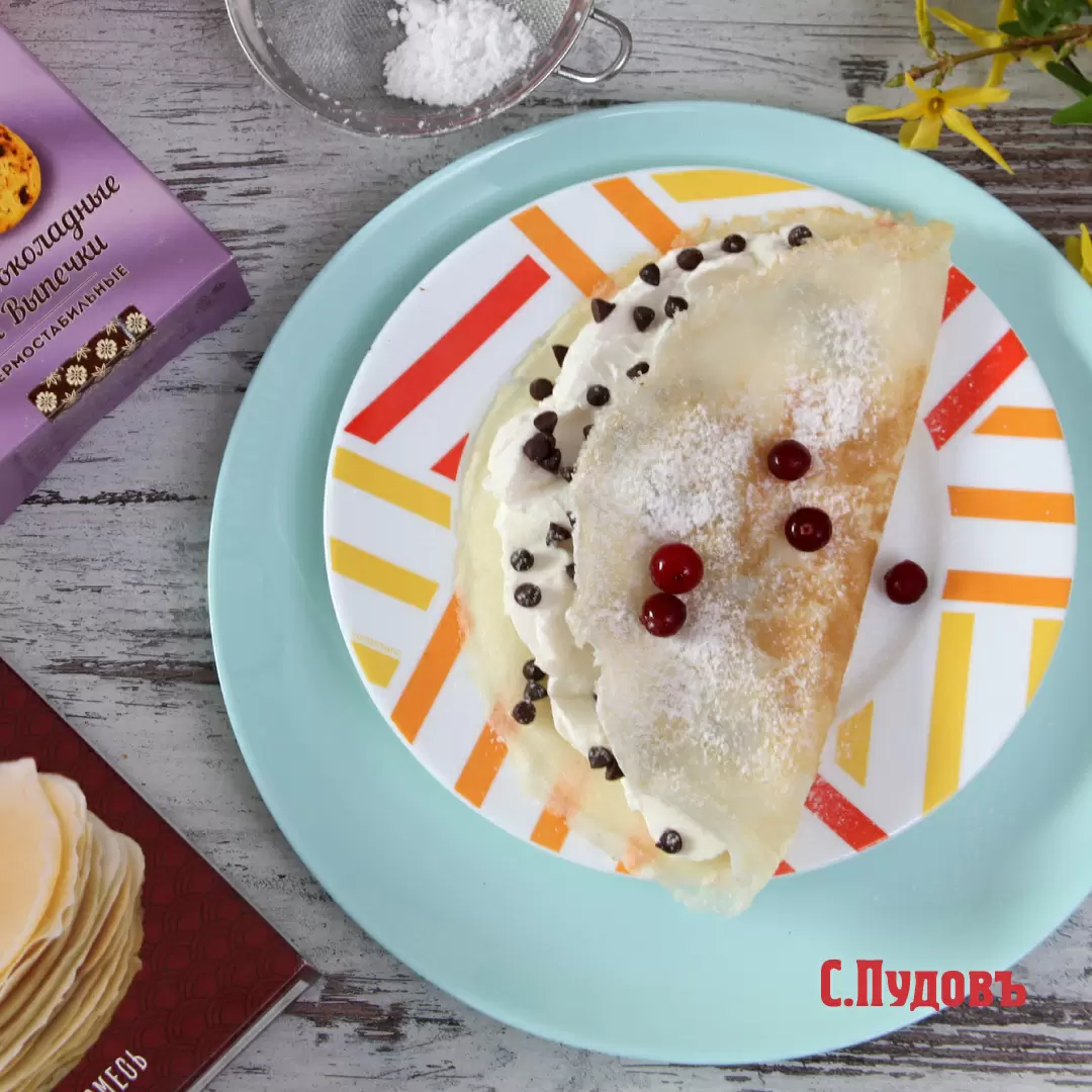 Этим днем стоит попробовать рисовые блины с нежным кремом из сливочного сыра и шоколадными каплями. Они удивляют своей легкостью и мягкостью, а их вкус завораживает. Для их приготовления достаточно использовать готовую смесь для рисовых блинов «Золотое утро», а к ней прилагается простой рецепт крема.