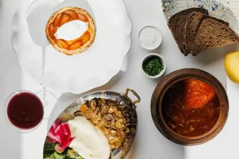 Завершающее блюдо — галета с иссык-кульскими абрикосами от шеф-кондитера Бека Караева. Озеро Иссык-Куль ассоциируется с историей Гагарина, поскольку считается местом его восстановления. Использование местных абрикосов символизирует связь с природным окружением и возвращение к корням.
