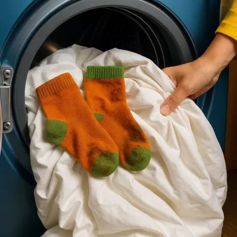 Носки, даже после стирки, не просто куски ткани. Они подвергаются постоянному контакту с потоотделением, микробами из обуви и даже грязью с пола. В результате, даже самая добросовестная стирка не уберет все следы, которые могут остаться. Когда носки и постельное белье оказываются в одной загрузке, грязь и микробы начинают «гулять» по барабану стиральной машины, прилипая к волокнам чистых наволочек и простыней.