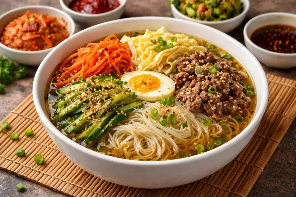 Этот освежающий суп, который особенно популярен в жаркие дни, был адаптирован «советскими корейцами» под доступные ингредиенты. Кукси готовится по принципу "сделай сам", что позволяет каждому экспериментировать с ингредиентами. Лапша, мясо и острые кислые салаты укладываются в глубокую тарелку, после чего заливаются холодным бульоном или рассолом. Давайте подробно рассмотрим классический рецепт и его интересные вариации.